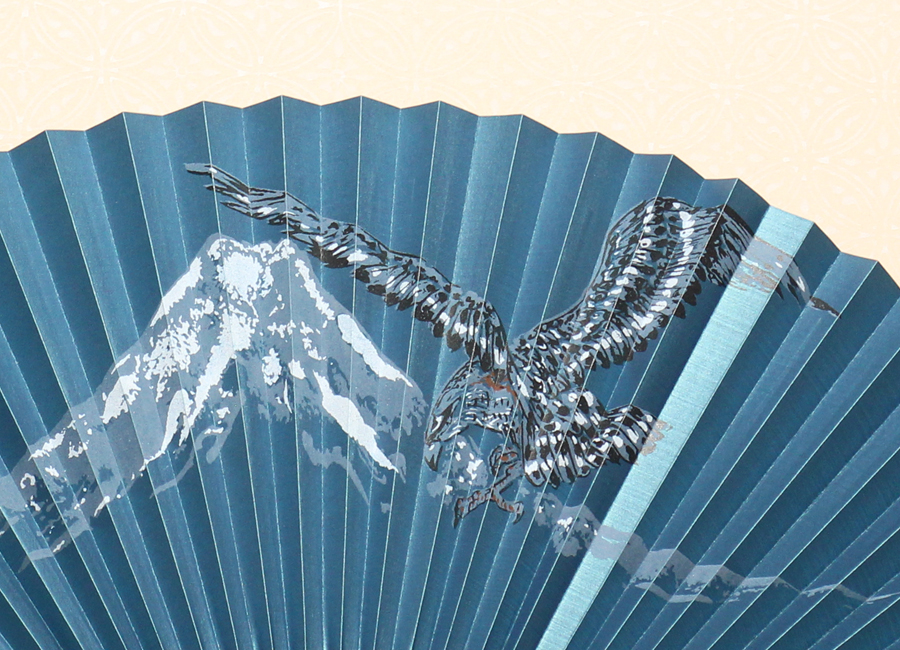地紙は光沢のある青緑で黒染の扇骨と調和し、クールに仕上がっています。