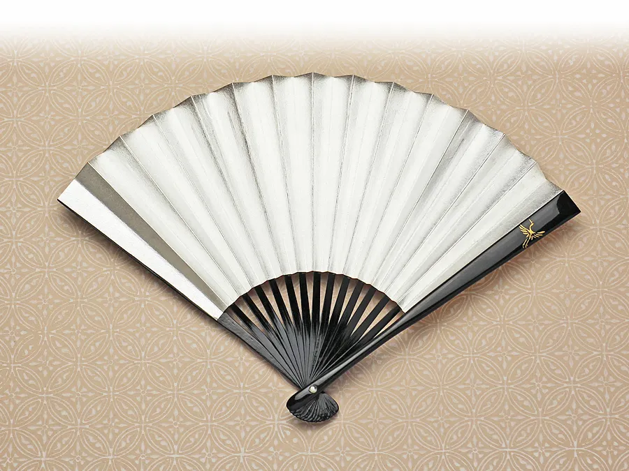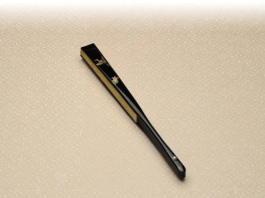 京扇子 手蒔絵 鶴亀