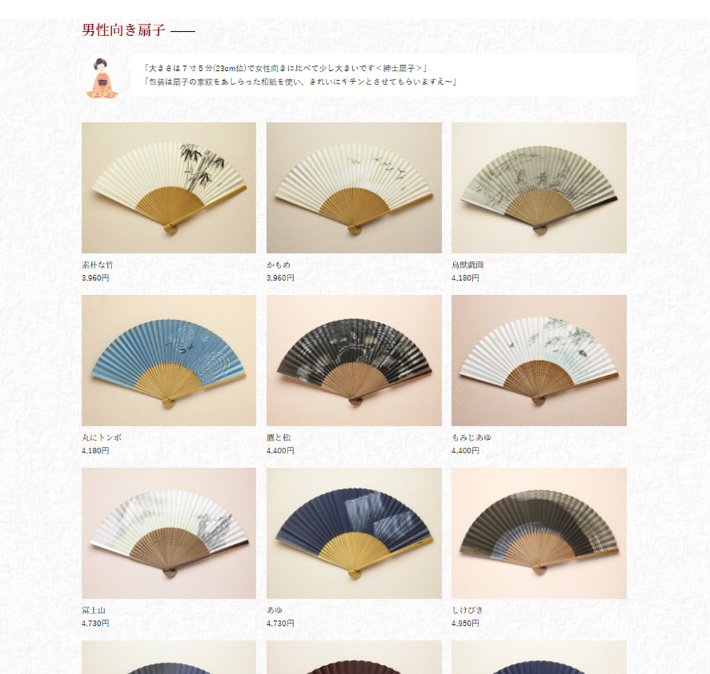 扇子は、形が末広がりで、縁起がいいとされていますので、お祝いごとには最適で、お好みとご予算に合わせて選んでいただければと思います。
