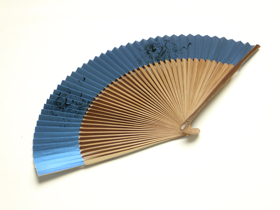 迫力のある風神雷神を紺の地紙の上に漆で描いてあり、落ち着いた感じに仕上がっています。