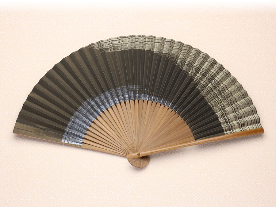 金と銀のしけびきでこげ茶色の地紙にひいています。